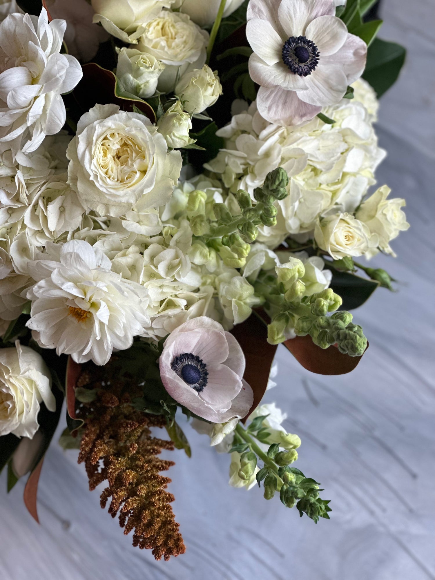 Exact florals change based upon seasonal availability. I always pick the freshest, highest-quality blooms to ensure your arrangement lasts. If you have a specific flower request, please email or call me and I will do my best to accommodate.